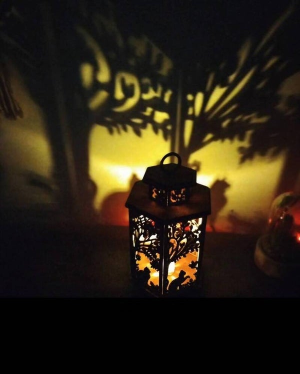 Lanterne Photophore en Bois, lampe Décorative à Motifs chats et nature