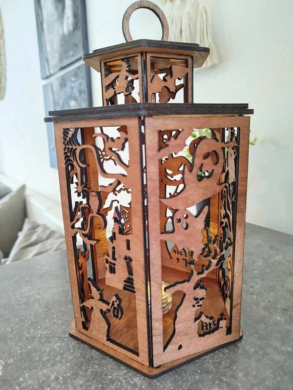✨Lanterne Halloween en bois – Ambiance mystique & ombres projetées ✨