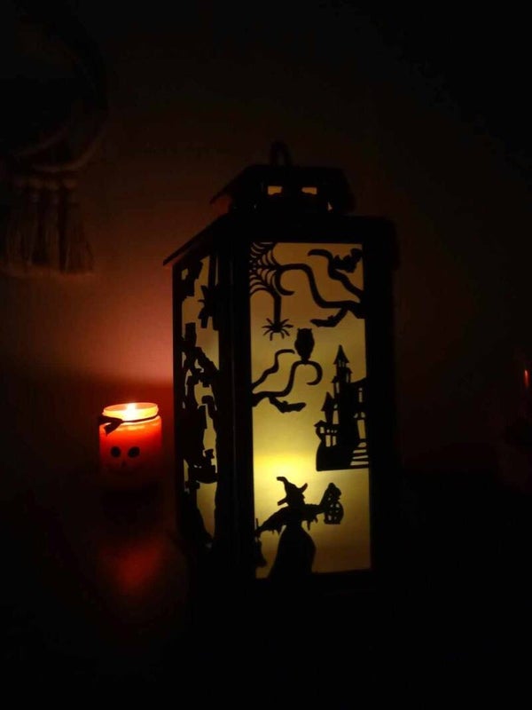 Chaque face dévoile une scène d’Halloween minutieusement gravée : sorcières, chauves-souris, citrouilles et fantômes se détachent élégamment à la lumière d’une bougie LED (incluse).