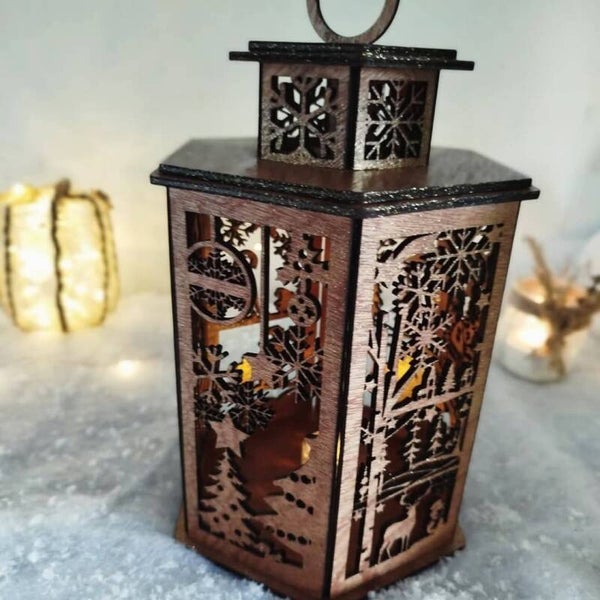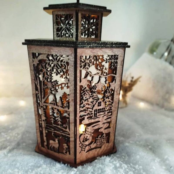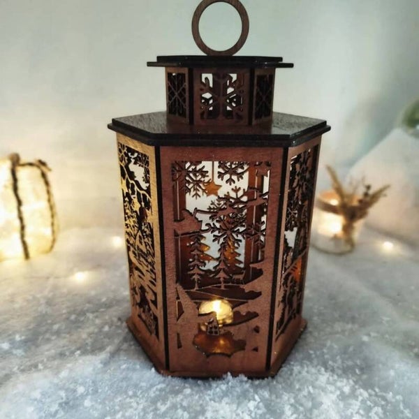✨Lanterne de Noël en bois découpé – Ambiance féerique✨