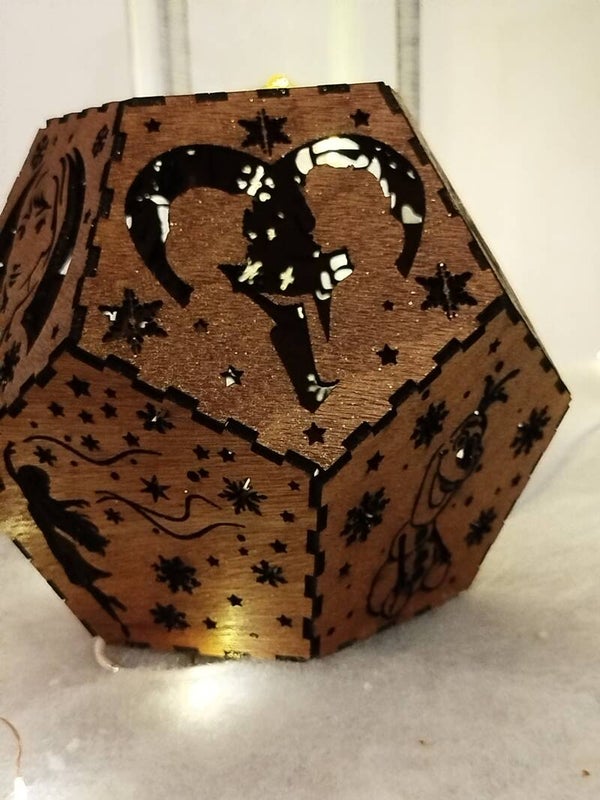 Ajoutez une touche féerique à la chambre de votre enfant avec cette lampe photophore inspirée de la Reine des Neiges. Gravée avec des motifs détaillés des personnages du célèbre conte, elle projette de magnifiques ombres lumineuses sur les murs, créant une ambiance chaleureuse et magique. Entièrement personnalisable avec le prénom de votre enfant, c'est le cadeau parfait pour un anniversaire, Noël ou toute autre occasion spéciale. Fabriqué à la main avec soin, ce photophore en bois est à la fois décoratif et fonctionnel.