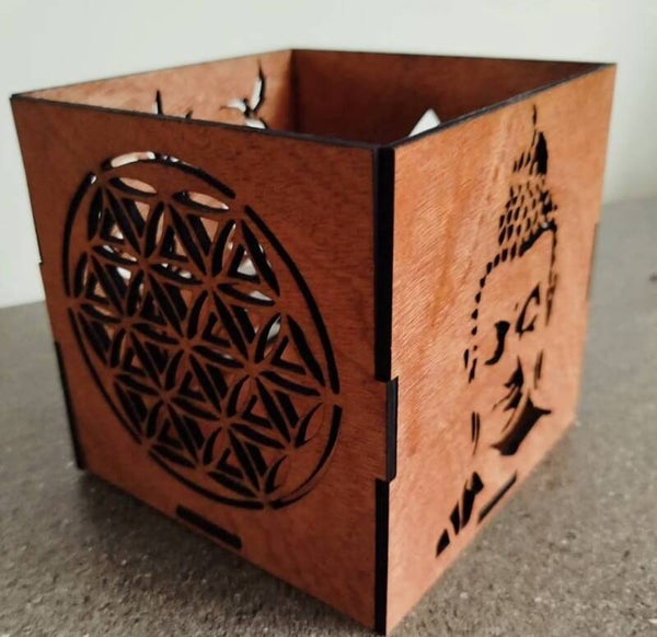 Photophore en bois - Design Bouddha & Fleur de Vie - Décoration zen et apaisante