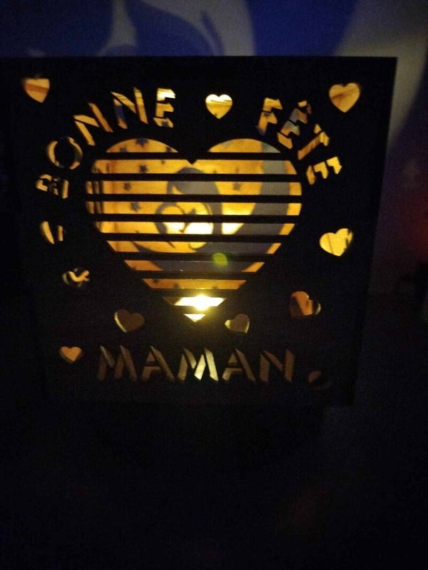 Lampe Photophore en Bois "Bonne Fête Maman". Cadeau Unique pour la Fête des Mères