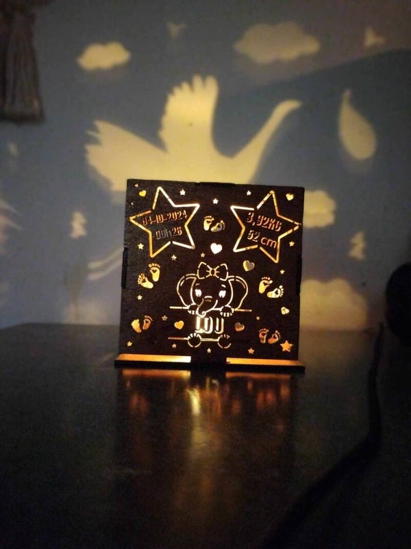 Caractéristiques : Émet une lumière douce et chaleureuse, idéale pour une chambre de bébé ou comme souvenir précieux.