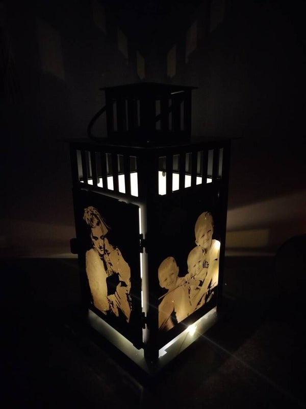 Offrez une lumière pleine d’émotion avec cette lanterne noire au style classique et intemporel, sublimée par une gravure sur verre personnalisée. Chaque face peut être ornée de vos photos favorites, finement gravées pour créer un jeu d’ombres unique et émouvant une fois la lanterne allumée.