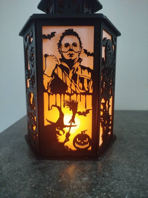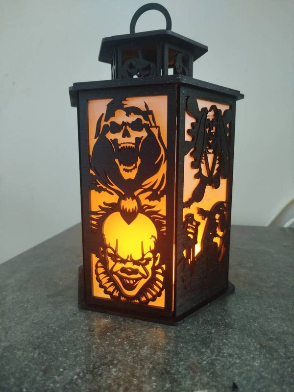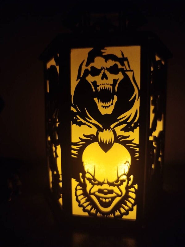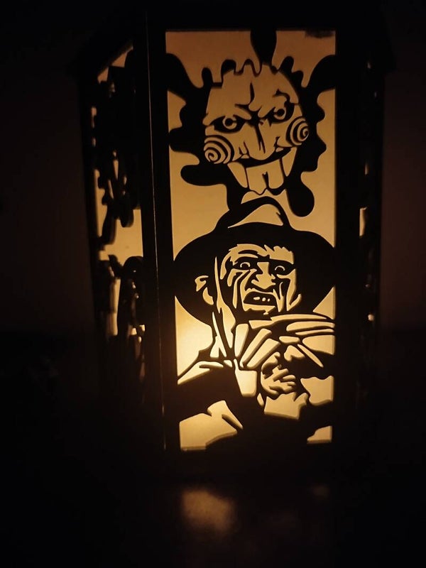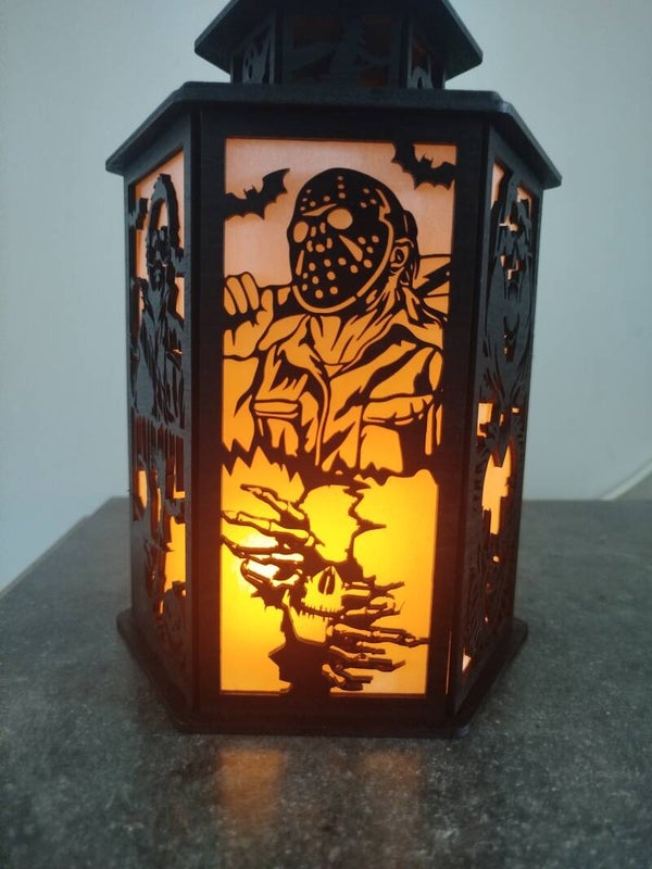 Lanterne Halloween avec personnages de films d’horreur – Bougie LED incluse – Décoration terrifiante
