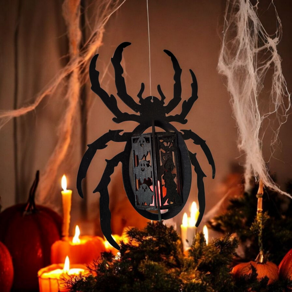 Lampe araignée noire mystique 🕷️ avec bougie LED – Déco Halloween & maison gothique