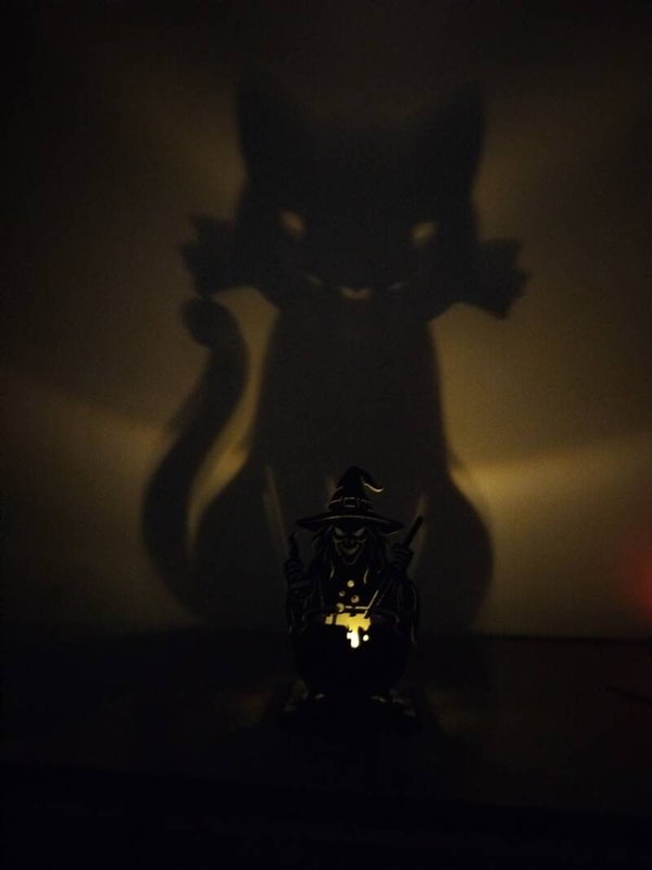 Lorsque vous allumez votre bougie (non incluse 🕯️), les ombres du chat se reflètent magiquement sur le mur, créant une ambiance mystique et envoûtante 🐱🌙.