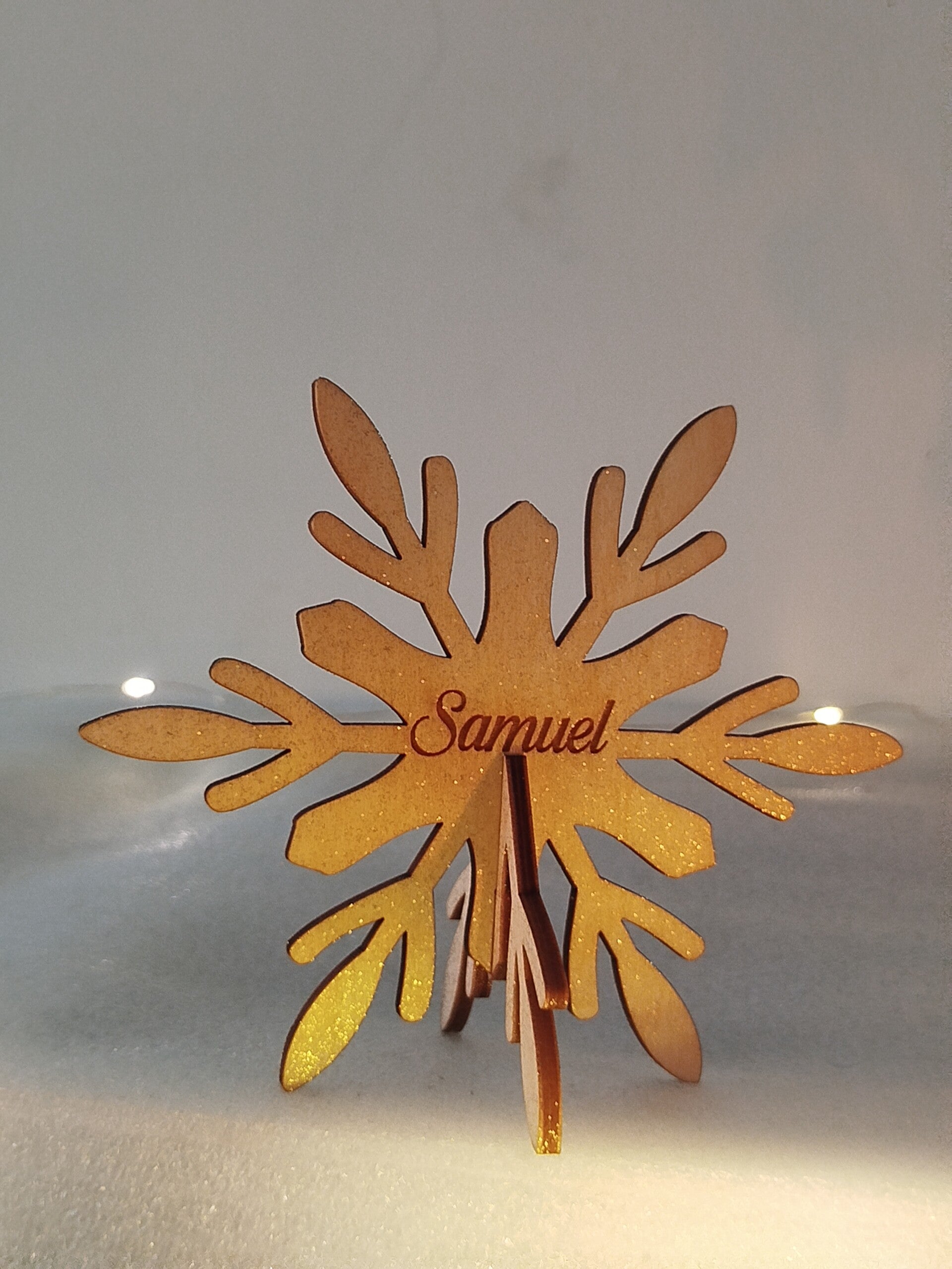 Marque-place Flocon de neige personnalisé – Bois 12 cm